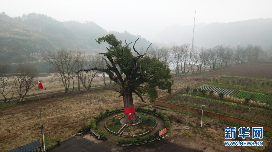 這是1月28日在湖南省張家界市慈利縣溪口鎮(zhèn)樟樹村拍攝的“紅軍樹”(無人機照片)。新華社記者 陳振海 攝