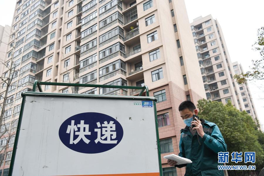 2月11日,中國郵政攬投員劉元元在安徽省合肥市青陽路社區一處居民小區內派送快遞。新華社記者 張端 攝