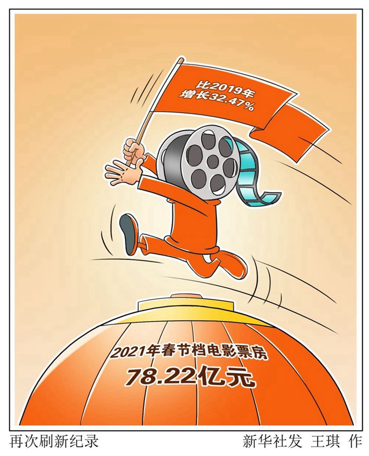 國家電影局數據顯示,除夕至正月初六,全國電影票房達78.22億元,再次刷新春節檔票房紀錄;支付寶數據顯示,春節日均觀影買票人數增加超560%。