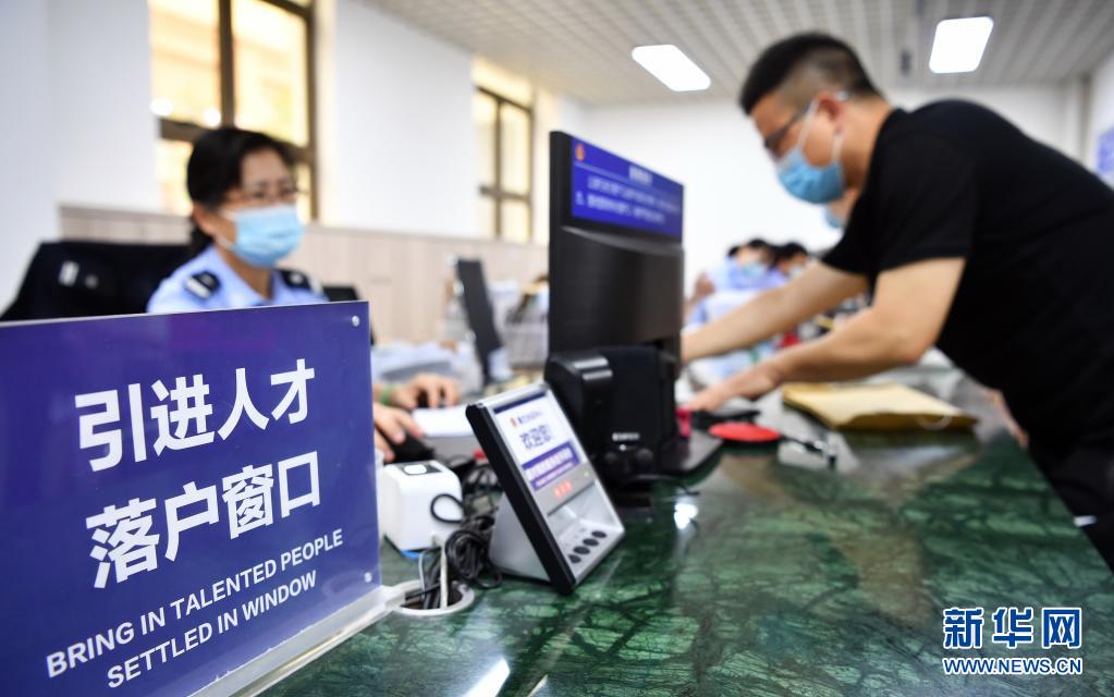 4月2日,外省人員在海口市公安局美蘭分局人口和出入境管理服務中心辦理引進人才落戶業務。新華社記者 郭程 攝
