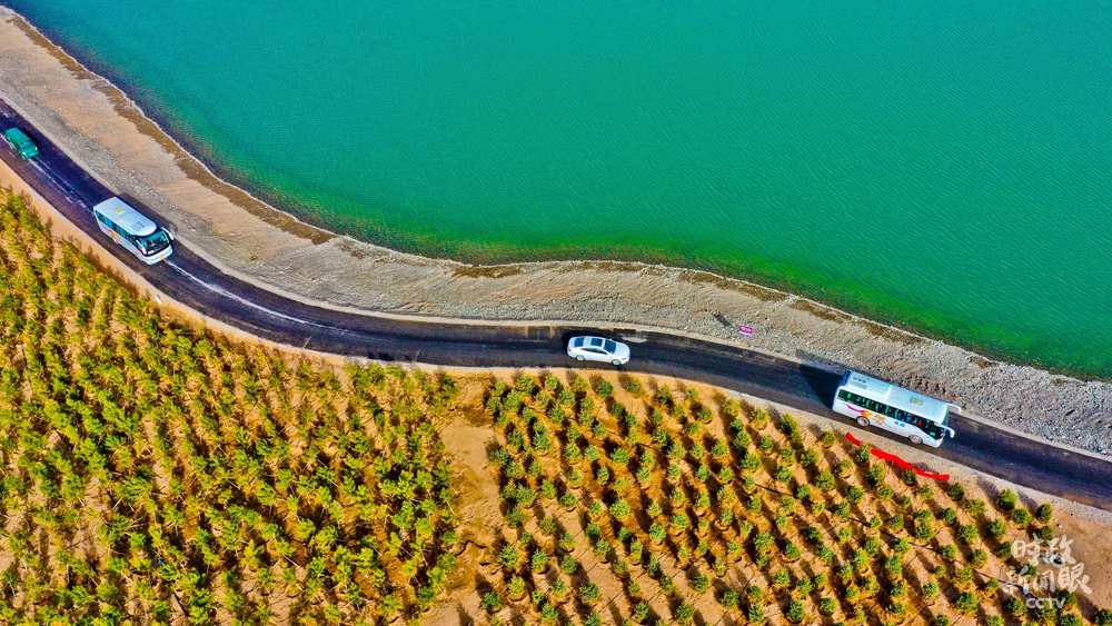 △4月15日,甘肅張掖萬畝常青林基地植樹現場。(圖/視覺中國)
