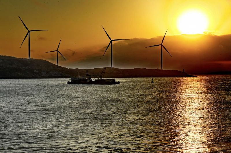 △根據“十四五”規劃和2035年遠景目標綱要,我國將推動能源清潔低碳安全高效利用,加快新能源、綠色環保等產業發展,促進經濟社會發展全面綠色轉型。圖為在福建南日島海域拍攝的風力發電場。