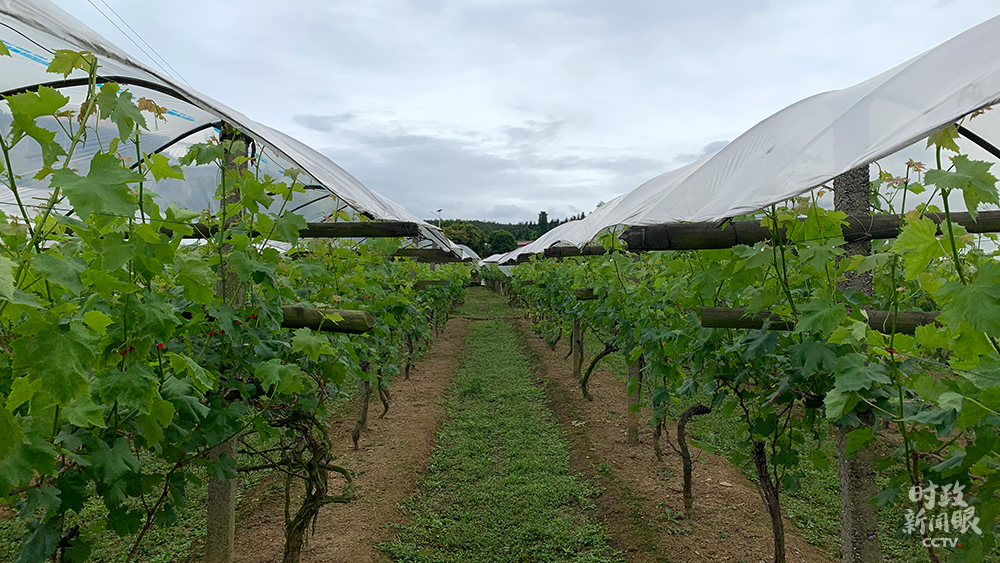 △白色塑料膜的棚架下,是村里種植的多品種葡萄。(總臺(tái)央視記者馬超、張曉鵬、趙化拍攝)