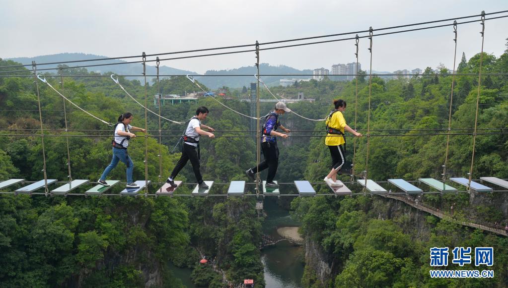 5月2日,游客在貴州省黔南布依族苗族自治州福泉市灑金谷風景名勝區(qū)游玩。