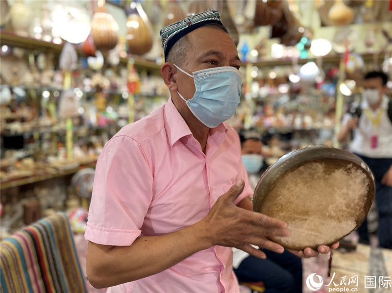 隨著喀什古城的改造,旅游業得到發展,為當地創業者提供了更好的創業環境。“我家是木藝世家,我12歲開始學習,到我兒子已經是第四代了。現在我們家的木器店越來越大,在三亞還開了第三家分店。我們也會做直播帶貨,有時候一個月就能有10萬的收入。”艾山山江表示。
