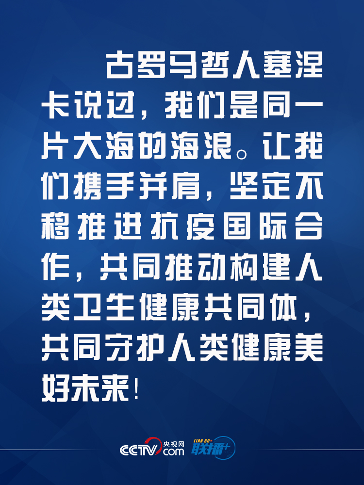 ●面對傳染病大流行,我們要秉持人類衛生健康共同體理念,團結合作、共克時艱,堅決反對各種政治化、標簽化、污名化的企圖。