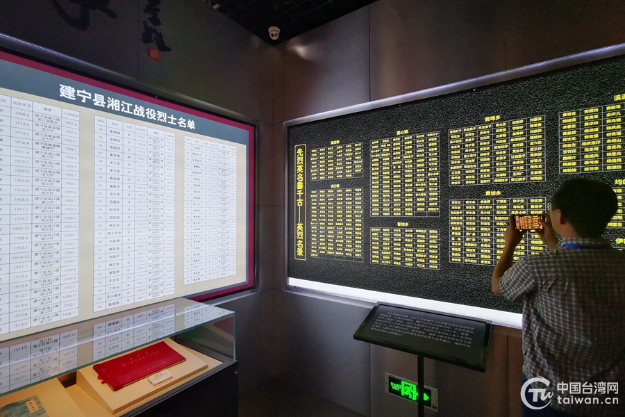 中央蘇區(qū)反“圍剿”紀(jì)念園陳列館內(nèi)革命烈士犧牲名單。(中國臺灣網(wǎng) 尹賽楠 攝)