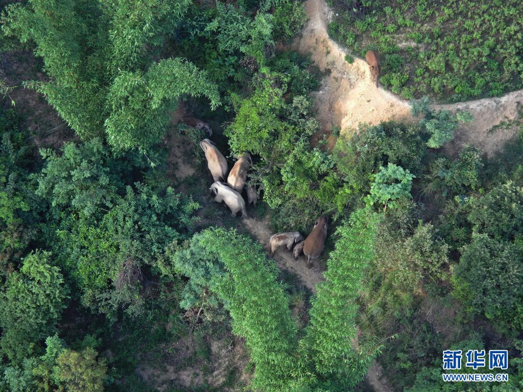 云南北移亞洲象群從玉溪市新平縣進入紅河州石屏縣