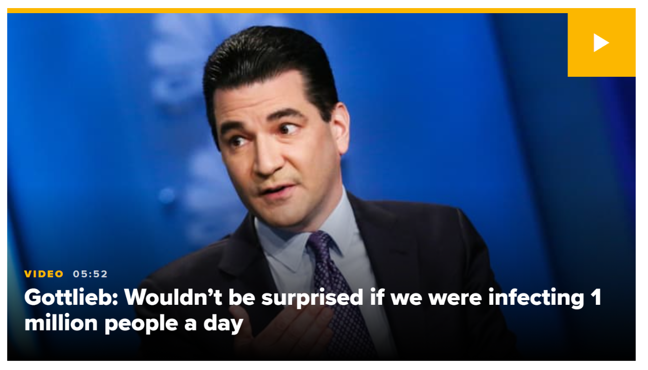 戈特利布稱,確診病例數(shù)與真實(shí)感染水平之間的差異源于那些無癥狀或僅出現(xiàn)輕微癥狀的患者,他們不會接受美國衛(wèi)生部門的檢測并出現(xiàn)在官方所公布的確診病例數(shù)字中。
