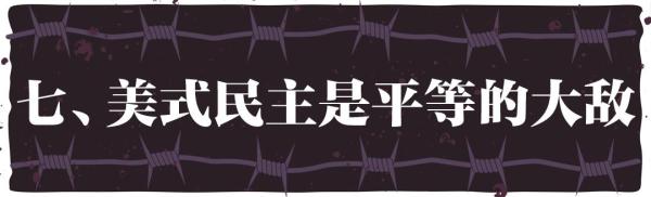 民主意味著全體社會成員有平等的政治權利。但美國卻悄悄將平等概念表象化、泡沫化,選民只有在投票時是一人一票,但投票后又變成贏者通吃,導致政客在選舉時輕易承諾、漫天許愿,選舉后將承諾拋諸腦后、毫無擔當,選舉時的平等反而成為了日后不公平的根源。