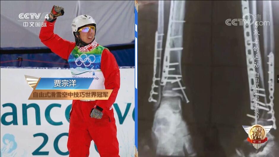 右側(cè)的X光照片是正在備戰(zhàn)2022北京冬奧會(huì)的空中技巧隊(duì)老將賈宗洋的左腿照片。賈宗洋在備戰(zhàn)2018年平昌冬奧會(huì)期間意外受傷,左腿粉碎性骨折,斷成了三截。為了能夠趕上平昌冬奧會(huì),他在腿里面做了鋼釘支架。這樣的鋼釘最短的估計(jì)有三厘米多,長的有四五厘米,賈宗洋的左腿上有22顆這樣的鋼釘,他就是帶著這些鋼釘參加的平昌冬奧會(huì)。
