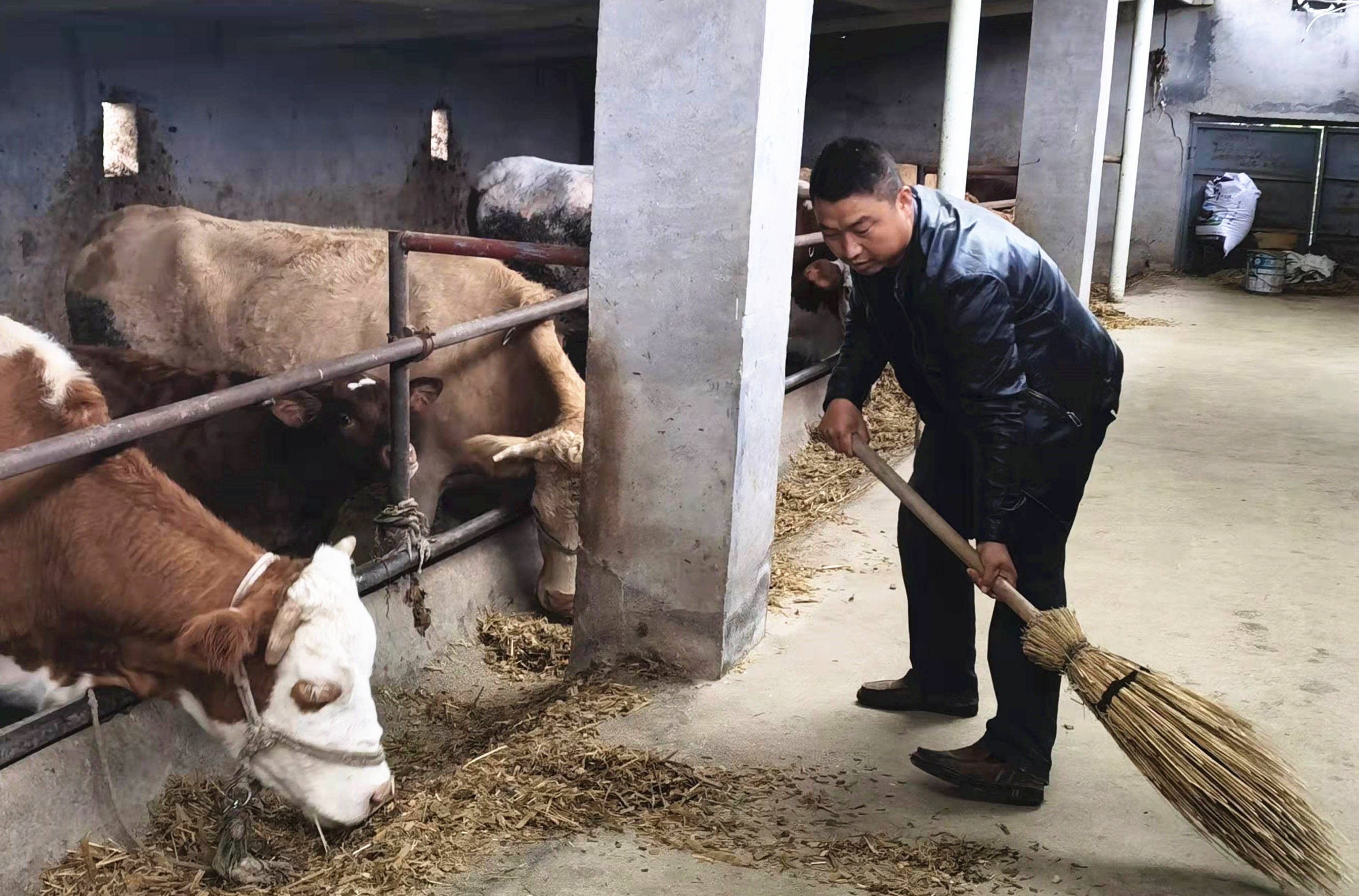 蒙忠鵬在自家養(yǎng)殖場(chǎng)喂牛。(受訪者供圖)
