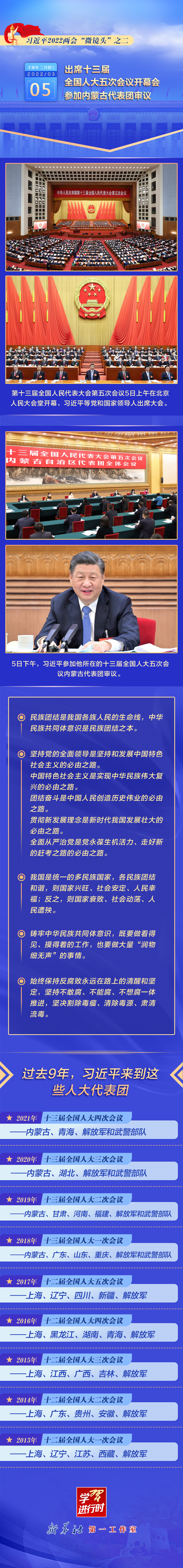 習(xí)近平2022兩會(huì)“微鏡頭”之二:3月5日,出席人代會(huì)開幕會(huì) 參加內(nèi)蒙古代表團(tuán)審議