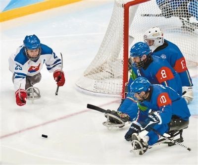 3月6日,北京冬殘奧會冰球小組賽在國家體育館繼續(xù)進行。圖為意大利隊對陣斯洛伐克隊。本報記者 蔣雨師攝