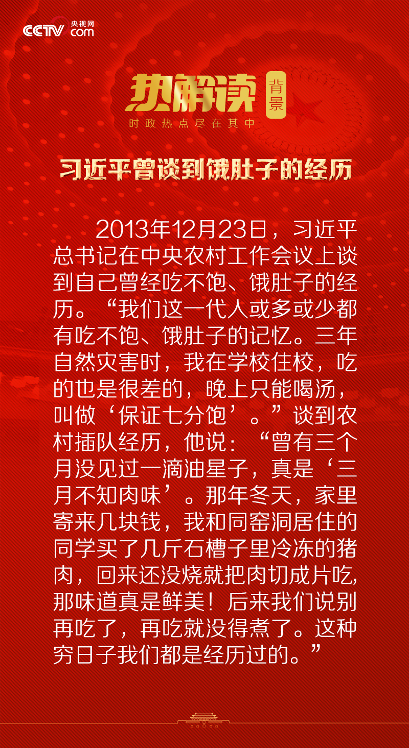 在本次聯組會上,總書記憶苦思甜,動情回憶以往勒緊褲腰帶的苦日子。這不是總書記第一次回憶“餓肚子”的苦日子,強調糧食安全的重要性。