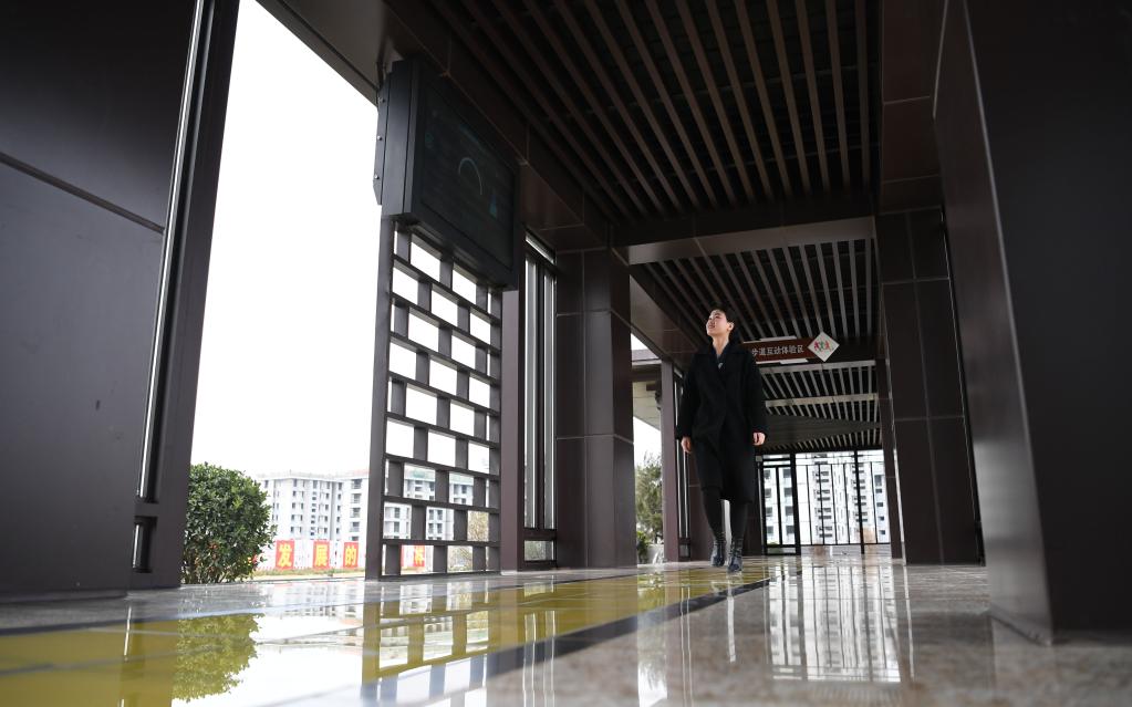 劇村站工作人員在壓力發電步道體驗區進行展示。(新華社記者朱旭東攝)