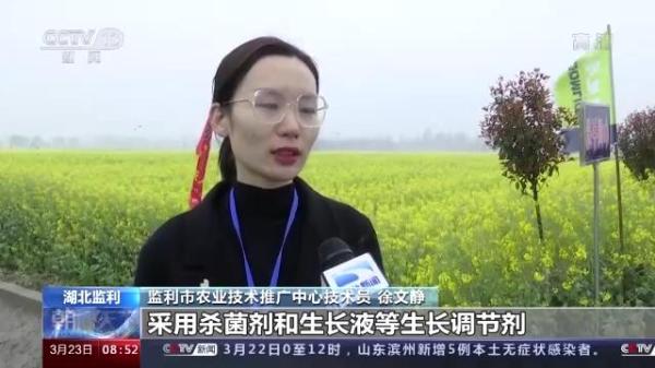 監(jiān)利市農(nóng)業(yè)技術(shù)推廣中心技術(shù)員 徐文靜:采用殺菌劑和生長液等生長調(diào)節(jié)劑,以達(dá)到促進(jìn)油菜正常生長,防菌核病、防早衰、防花不實(shí)和防高溫逼熟的一個效果,以保證油菜的豐產(chǎn)。