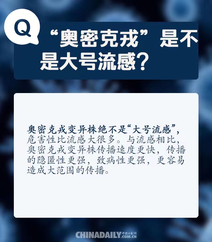 面對(duì)新一輪的嚴(yán)峻考驗(yàn),面對(duì)一些似是而非的觀點(diǎn),我們有著各種各樣的疑慮。為什么要堅(jiān)持“動(dòng)態(tài)清零”?中國抗疫為何不“躺平”?奧密克戎是大號(hào)流感嗎?……近日,對(duì)于這些疑問,國家衛(wèi)健委疫情應(yīng)對(duì)處置工作領(lǐng)導(dǎo)小組專家組組長(zhǎng)、清華大學(xué)萬科公共衛(wèi)生與健康學(xué)院常務(wù)副院長(zhǎng)梁萬年進(jìn)行了回應(yīng)。一文了解!