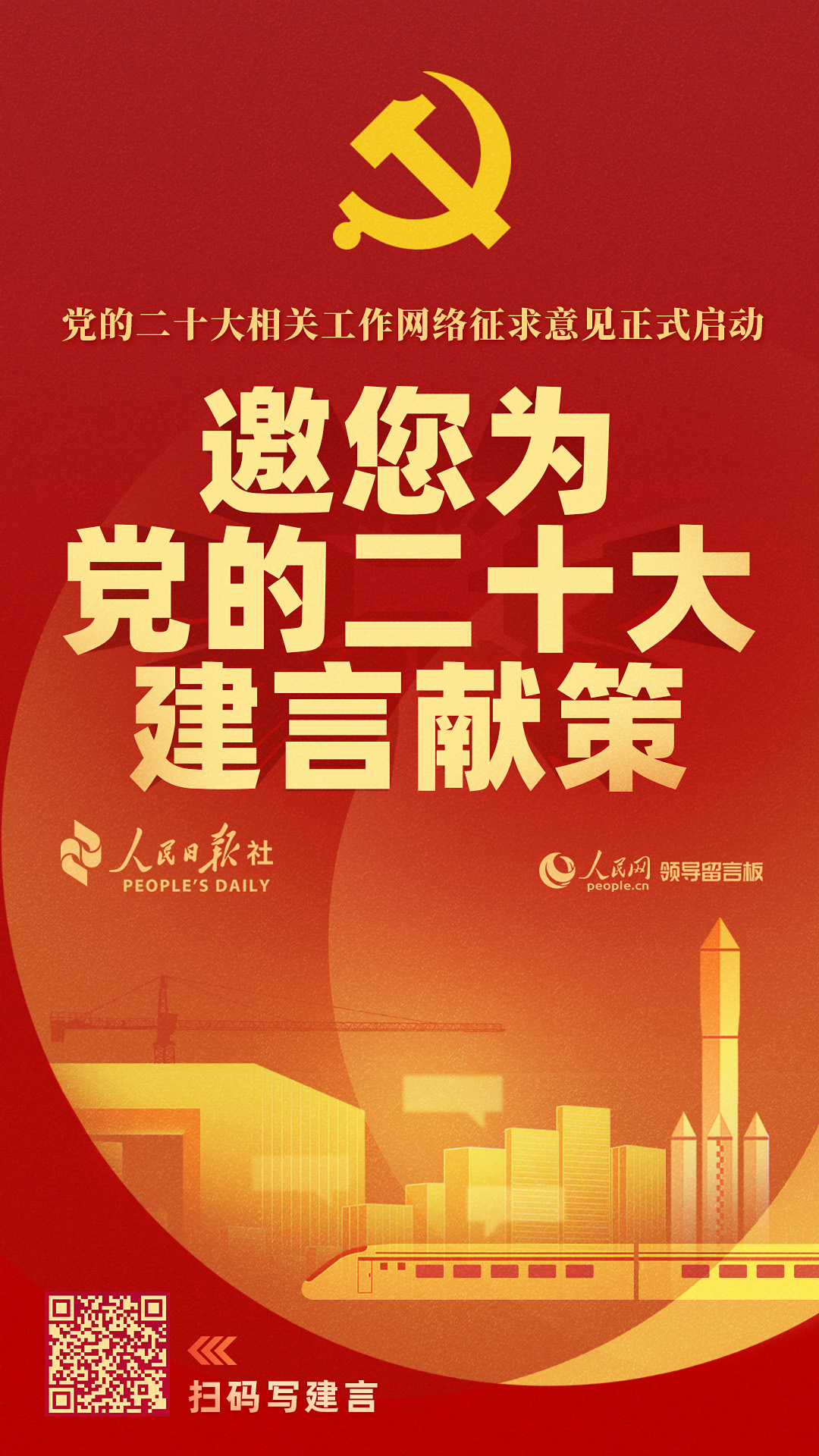 黨的十九屆六中全會決定,黨的二十大于2022年下半年在北京召開。開展黨的二十大相關工作網絡征求意見,充分彰顯了以習近平同志為核心的黨中央發揚民主、集思廣益的優良作風,是我們黨堅持以人民為中心、尊重人民主體地位、走好群眾路線的重要體現,是發揮中國特色社會主義制度優勢、推進全過程人民民主的生動實踐,是適應互聯網時代新要求、推進國家治理體系和治理能力現代化的有益探索。