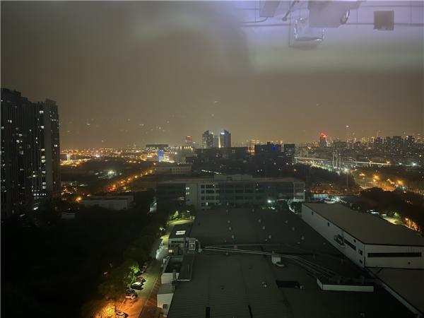 18:45,一切收拾妥當,晚飯來了。小藍的小推車上整齊堆滿了盒飯,大家排著隊有序拿飯,沒有爭搶,沒有喧嘩。吃著飯,眺望窗外,上海“三件套”盡收眼底,這是封控25天以來,足不出戶的我們,第一次看到如此璀璨的夜上海。