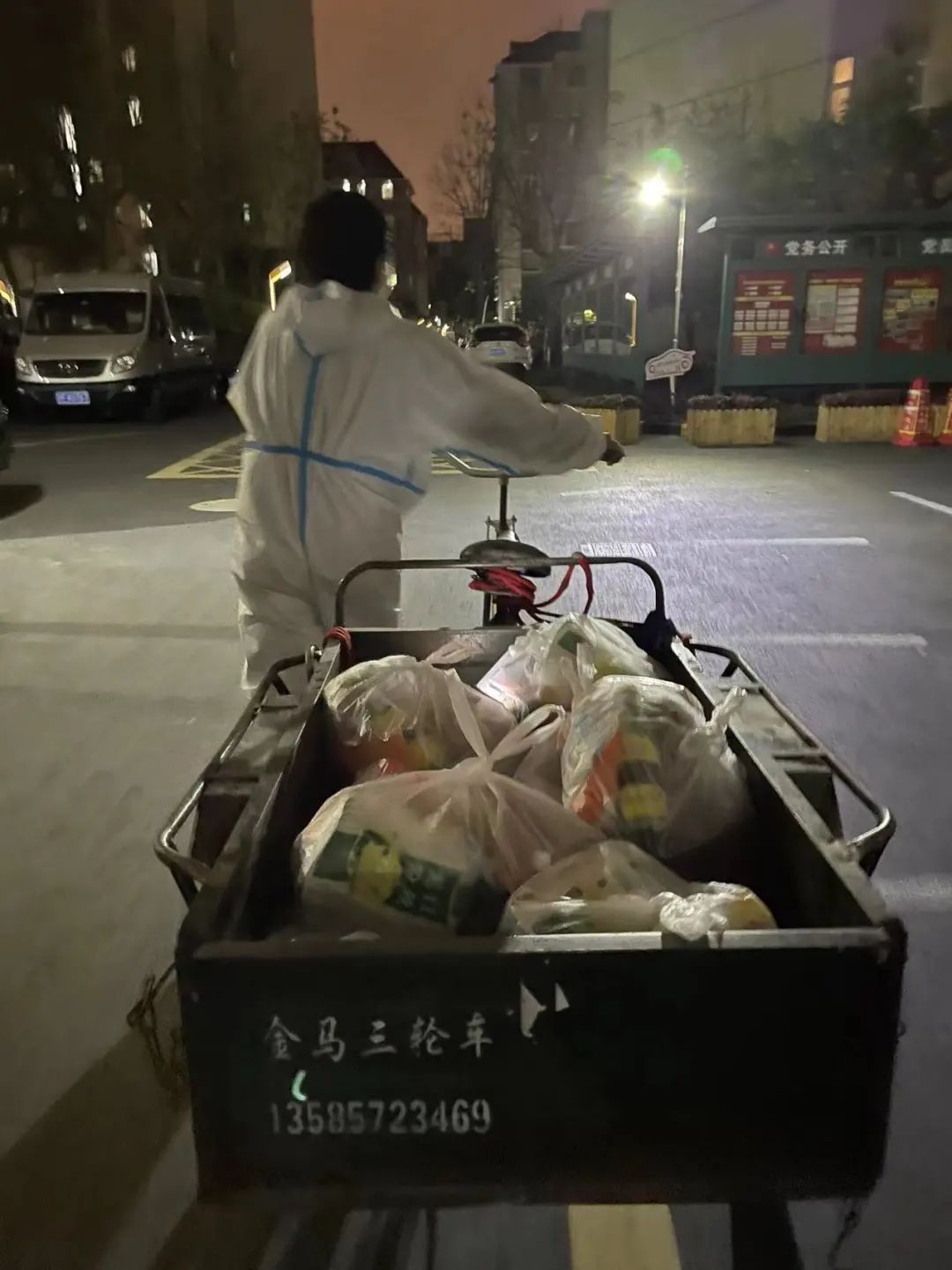 還有我隔壁鄰居大哥,他本來不是志愿者,最后不知道為啥就也加入了,也可能經歷過湖北疫情吧。他可以在外面等貨等到半夜一點。