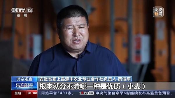 安徽潁上縣源豐農業專業合作社負責人 蔡俊軍:根本就分不清哪些是優質小麥,是企業要的,哪些是普通小麥,就因為這個,我第一次收,最后虧了3萬多塊錢。