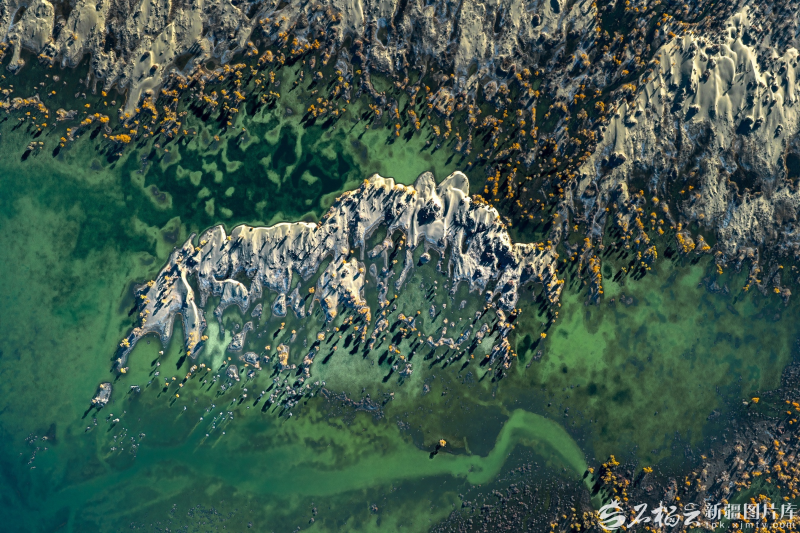 近日,馬立新在尉犁縣境內塔克拉瑪干沙漠腹地,首次拍攝到了一處沙漠胡楊“秘境”。更神奇的是,從高空俯瞰,8個小湖泊在沙海中相對集中,與金色的胡楊共同構成了一幅“沙水相依,水映胡楊”的絕美畫卷,整體形態宛如一只展翅欲飛的金鳳凰,因此他將此處命名“鳳凰島”。