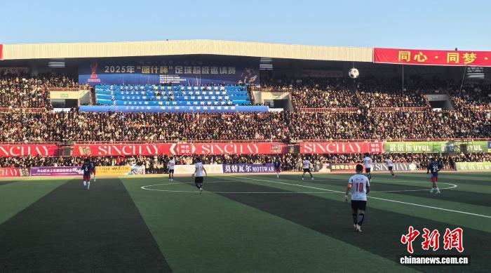 2025年“喀什杯”足球超級邀請賽(簡稱“喀什杯”)正在岳普湖縣舉辦。連日來,能容納約1.7萬名觀眾的體育場幾乎座無虛席,看臺上男女老幼的吶喊聲此起彼伏。40歲的岳普湖縣業余足球選手凱賽爾·塔依爾說:“在這里,足球就是最受歡迎的運動。”