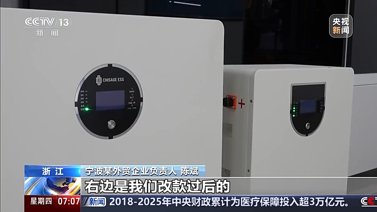 寧波某外貿企業負責人 陳斌:左邊的這個產品是我們原來的舊產品,右邊是我們改款過后的,相比原來的產品,新產品重量減少了15%左右,體積減小了25%左右,它的能量密度就更高了,在市場上就具有更好的競爭力。