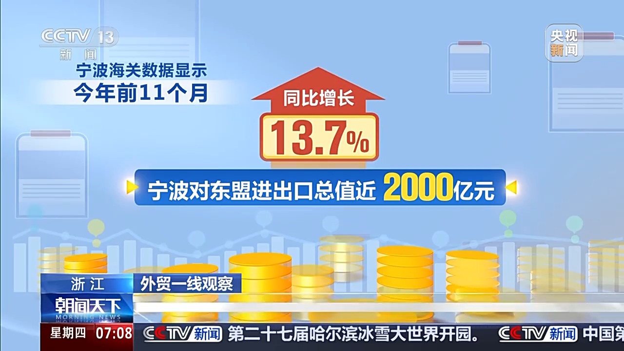 寧波某外貿企業負責人 陳斌:今年我們企業1到10月份,出口東盟相比去年有了50%到60%的增長。