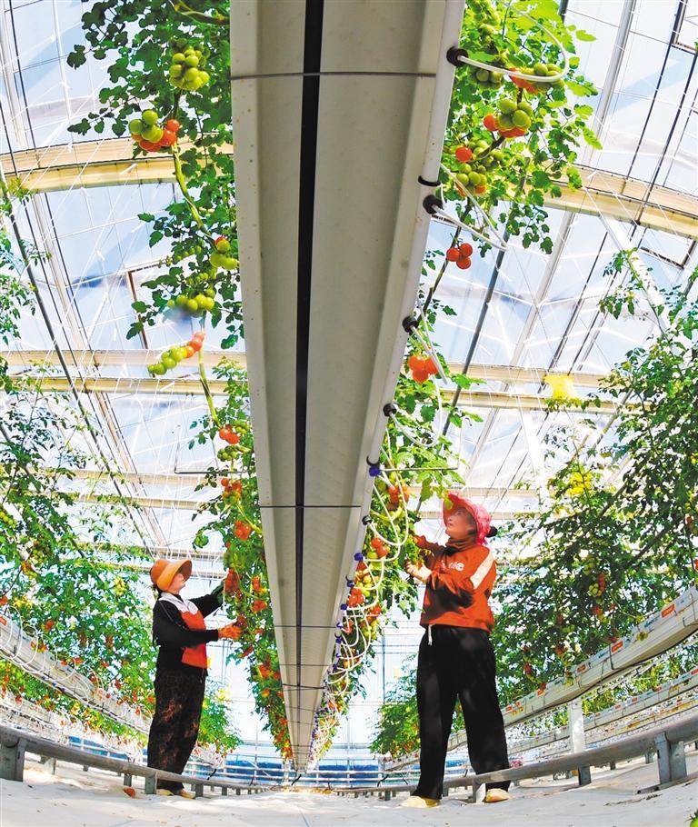 11月25日,江蘇省連云港市浦南鎮番茄莊園,工作人員在管護小番茄。近年來,當地大力發展以番茄采摘與品嘗為主題的綠色休閑基地和品牌番茄周邊產業。