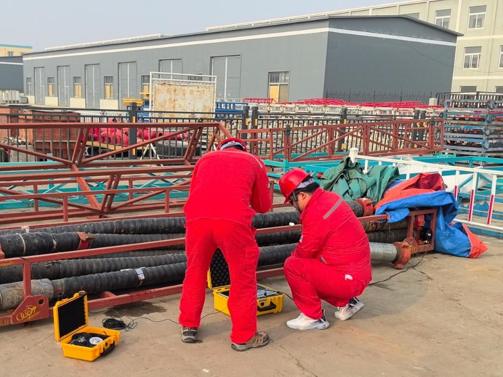 安徽中科昊音智能科技有限公司工作人員正在對油田軟管管道進行聲紋AI檢測。受訪者供圖