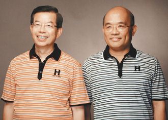 不過這張定裝照有個秘辛,因為蘇貞昌比較高,攝影師替謝長廷找了一張板凳,所以這畫面上的謝長廷“技高一籌”。 (云鵬)