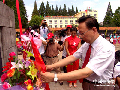 2006年7月31日,“海峽兩岸炎帝神農(nóng)文化論壇”,國臺辦交流局局長戴肖峰向神農(nóng)像敬獻(xiàn)花籃