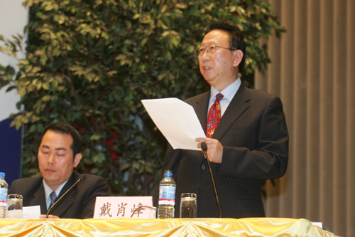 2006年8月7日,國務(wù)院臺辦交流局局長戴肖峰在海峽兩岸暨香港、澳門警學(xué)研討會上致辭(圖片來源:中國警察協(xié)會網(wǎng))