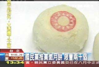 臺灣TVBS的報道說,國民黨的這場中秋晚會,除了黨內的人氣天王到場,還有一個小小的紀念品——黨徽月餅。靠近點看,上面的紅色裝飾就是國民黨黨徽,切開來,內餡是綠豆,選擇簡單樸實的綠豆椪,限量推出2000個,只在中秋晚會現場發放。