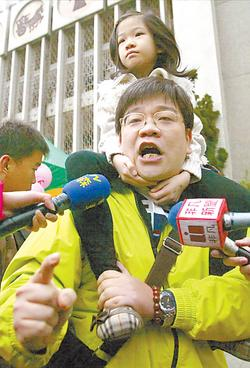 將女兒扛在肩上向陳水扁嗆聲的張姓家長
