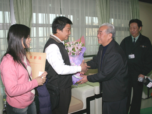 2007年,佘友文主任到臺資旺旺醫(yī)院看望臺胞。(資料圖)