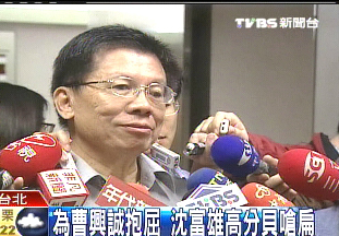 據臺灣《中時電子報》報道,對于陳水扁對曹興城刊登報紙言論的抨擊,沈富雄說,他是一忍再忍,到了忍無可忍的地步,因此今天跳出來為曹興誠說一句公道話。他認為近日來陳水扁以煽情的語言嗆曹興誠,不但有失“總統”的高度,也非常的不理性。