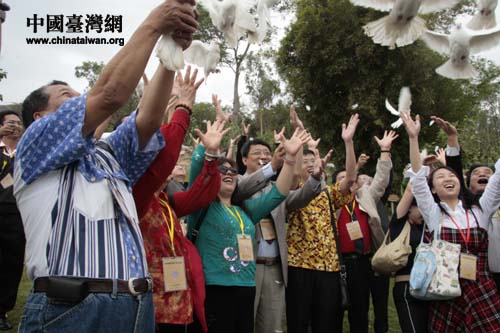 中國臺灣網12月2日三亞消息 昨天上午,參加“兩岸媒體海南行”采訪活動的記者抵達三亞南山文化旅游區(qū)參訪。來自臺灣媒體的記者與大陸媒體的記者在南山“梵鐘苑”共同撞響“和平鐘”,共同放飛“和平鴿”,共同種下“和平樹”,并參加了南山寺高僧舉行的兩岸和平法會,共同為兩岸和平,人民安樂祈福。(李杰)