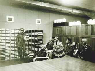 前排坐的是蔣介石,后排右一與三是美軍將領(lǐng),右二及四是蔣經(jīng)國與陳誠。他們在“黑貓中隊”成立前于桃園基地聽取簡報,了解加壓飛行裝備,這是U2使用的同款。(國民黨黨史館圖片)