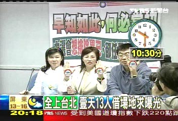 報道稱,記者會各式各樣的議題都有,在臺北市參選的民進黨籍候選人徐國勇被指樁腳辦餐會賄選,太太現身落淚;在彰化參選的的民進黨籍候選人林重謨說:“他(指競爭對手,下同)的家族掌握公共頻道,來攻擊別人抹黑別人”;在高雄縣參選的國民黨籍候選人江玲君則表示:“他的父親擔任鳳山市長,清理垃圾弊案,被檢察官具體求刑13年半。”
