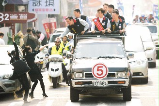 據臺灣《聯合報》報道,昨天下午4時,陳水扁車隊從臺南縣市交界的南萣橋出發,以20至30公里時速前進,警方三步一崗,一直延續到319槍擊案的武英街口。