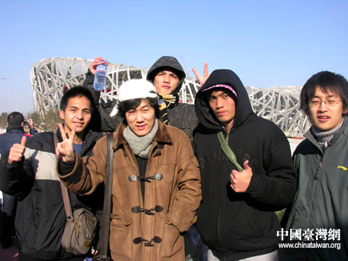 中國臺灣網(wǎng)1月23日北京消息 23日是08臺胞青年冬令營開營后活動的第一天。北京的冽冽寒風(fēng)擋不住臺灣學(xué)子的高漲熱情,面對奧運場館“鳥巢”和“水立方”,臺胞青年興奮雀躍,驚呼震撼,深感自豪。