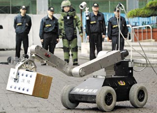 中國臺灣網1月27日消息 據臺灣媒體報道,為因應臺灣地區領導人選舉治安維護,臺“刑事局”今天上午展示包括“遮蔽器”、“手持式爆藥偵測器”、“ICM型X光機偵檢儀”、“防爆處理機械人”等新購置的防爆利器。6部新型防爆車也加入防爆行列,讓防爆處理達到零傷亡目標。