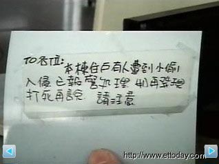 中國臺(tái)灣網(wǎng)2月21日消息 據(jù)臺(tái)灣東森新聞報(bào)道,臺(tái)灣屏東一名竊賊在住家公寓樓梯間貼警告紙條,提醒有小偷,并揚(yáng)言如再遇到打死再說,經(jīng)調(diào)查,原來這名竊賊的家也被偷過,他才貼紙條警告其它小偷別再來。