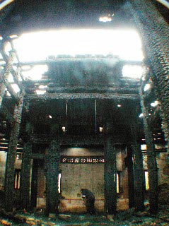 臺北縣蘆洲百年秀才厝疑遭縱火 大廳付之一炬(圖)