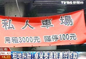 中國(guó)臺(tái)灣網(wǎng)2月26日消息 據(jù)臺(tái)灣TVBS電視臺(tái)報(bào)道,臺(tái)北市北投奇巖捷運(yùn)站附近,有一塊臺(tái)北市政府所有的空地,被前民進(jìn)黨秘書(shū)長(zhǎng)卓榮泰的遠(yuǎn)親卓明強(qiáng)承租作為停車場(chǎng),但附近店家指控,卓明強(qiáng)轉(zhuǎn)租停車場(chǎng)給他們,要求他們當(dāng)連帶保證人,卓明強(qiáng)卻沒(méi)有付租金給臺(tái)北市政府,導(dǎo)致租車位的人房子反而被查封,而且期間還要給旅游費(fèi)、茶水費(fèi)打點(diǎn)官員,店家覺(jué)得受騙,要控告卓明強(qiáng)欺詐。