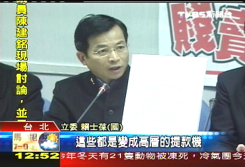國民黨“立委”賴士葆痛批臺當局“經濟部”賤賣華揚史威靈公司(圖片來源:TVBS)