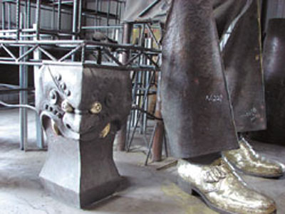 據(jù)報(bào)道,號(hào)稱島內(nèi)最大坐姿的蔣介石銅像,去年3月被高雄市政府大卸成200多塊,昨天修復(fù)的“雛型”在桃園大溪“兩蔣文化園區(qū)”重現(xiàn);但由于碎片實(shí)在太散還是無(wú)法完全重建,藝術(shù)家們便運(yùn)用現(xiàn)代解構(gòu)主義的手法,讓蔣介石坐在鋼架上。大溪鎮(zhèn)公所預(yù)計(jì)下月初就可以修復(fù)完成。